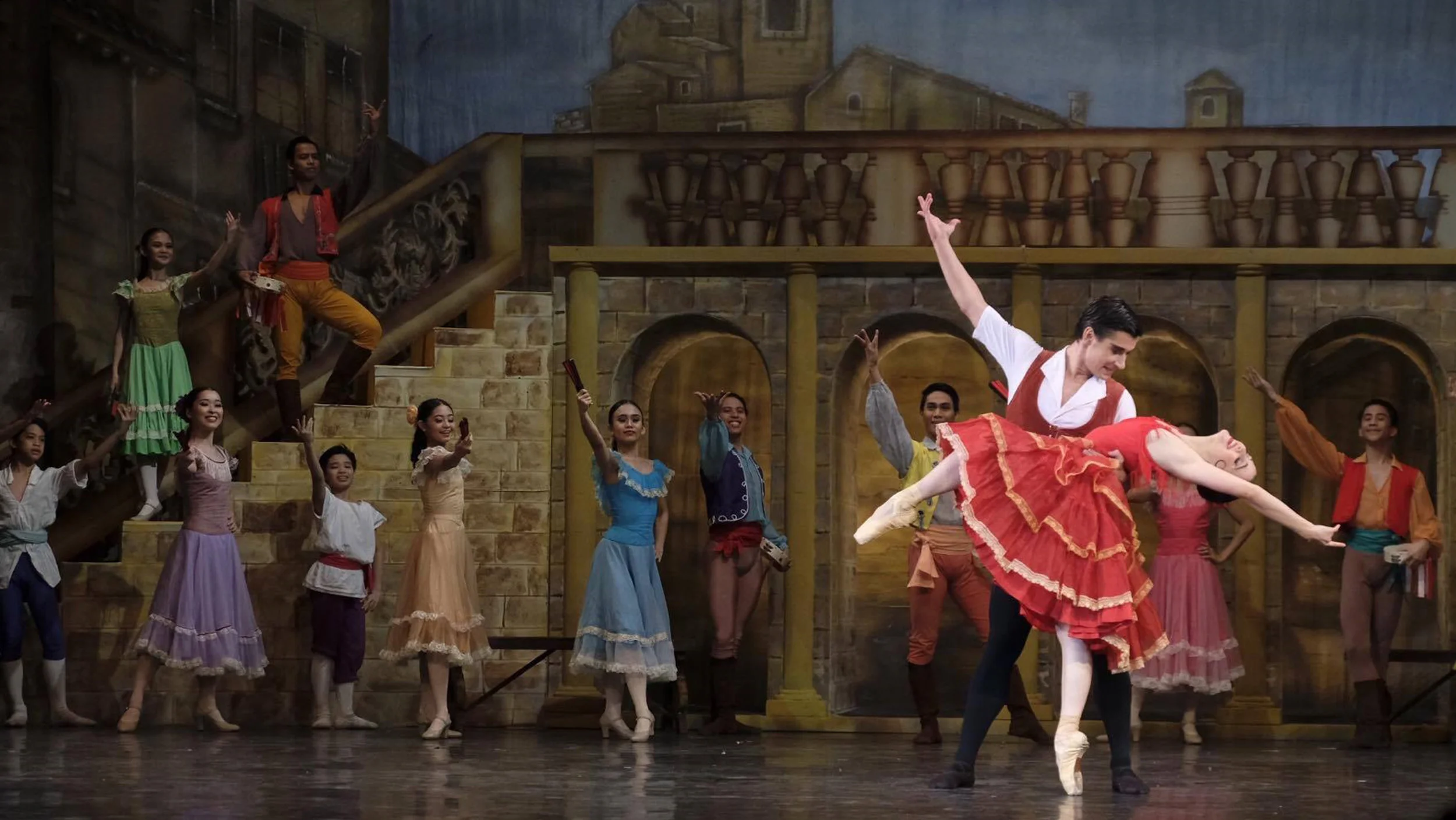 Katherine Barkman and Mikhail Martynyuk give a rousing performance as Kitri and Basilio in Ballet Manila’s Don Quixote. Photo by G-nie Arambulo