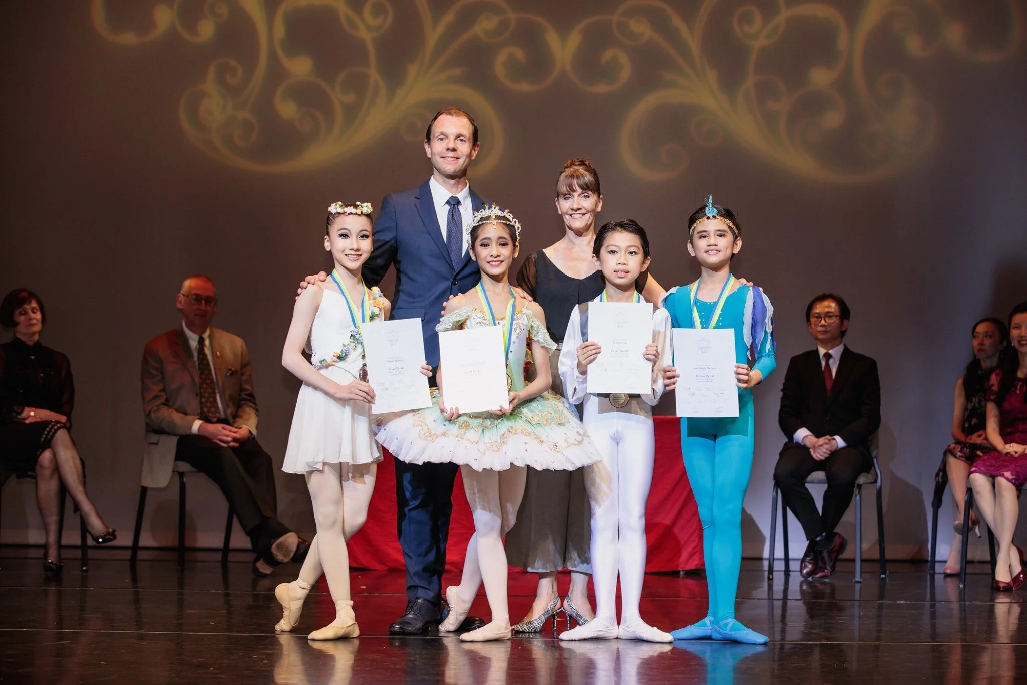 Angelo (rightmost) and his fellow winners in the Pre-Competitive B Division show off their certificates and medals at the awarding ceremonies of the Asian Grand Prix in Hong Kong last August. Angelo won the bronze. Photo courtesy of AGP