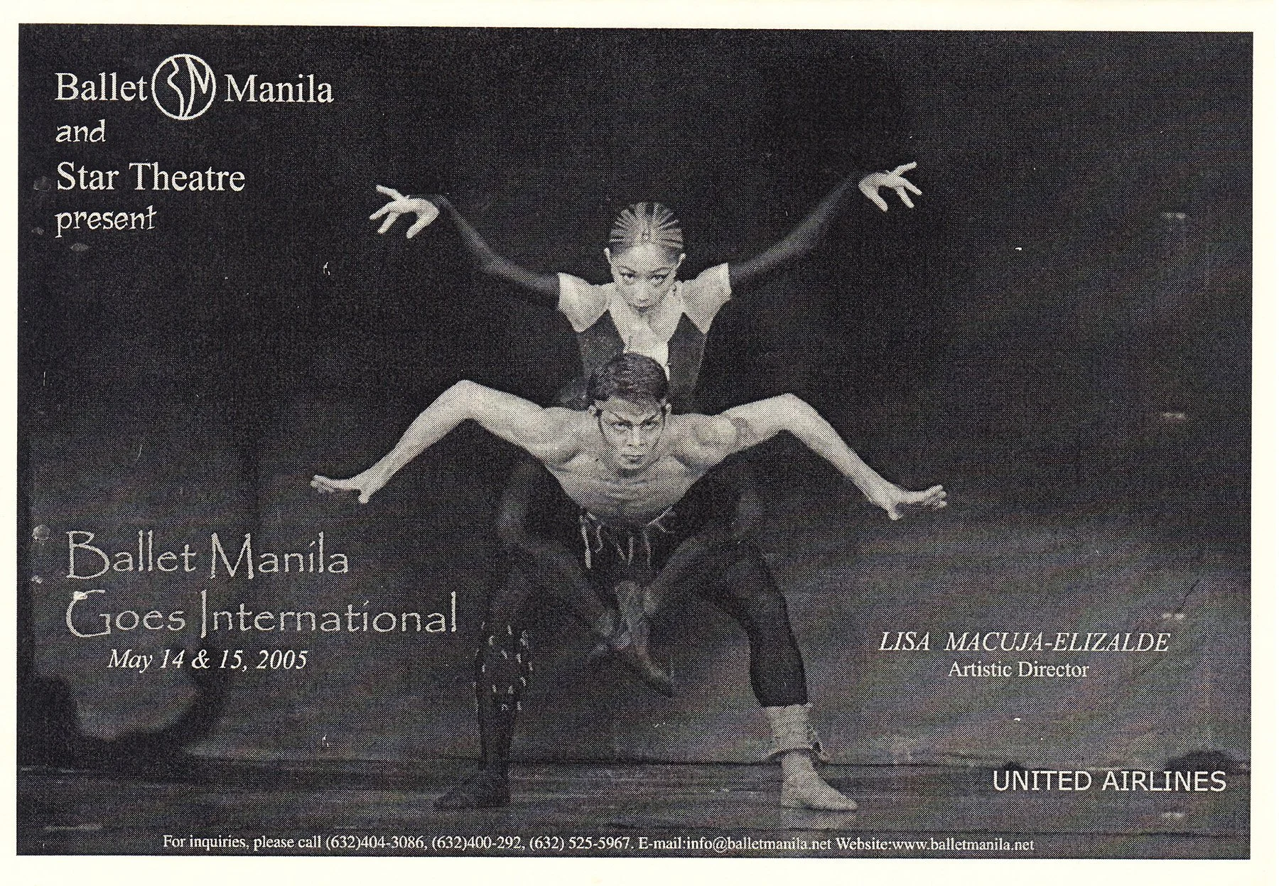 With the company headed for the United States anew for a performance tour and some of its dancers participating in an international competition, Ballet Manila Goes International on May 14 and 15 in 2005 served as a fitting send-off and on-stage preparation.