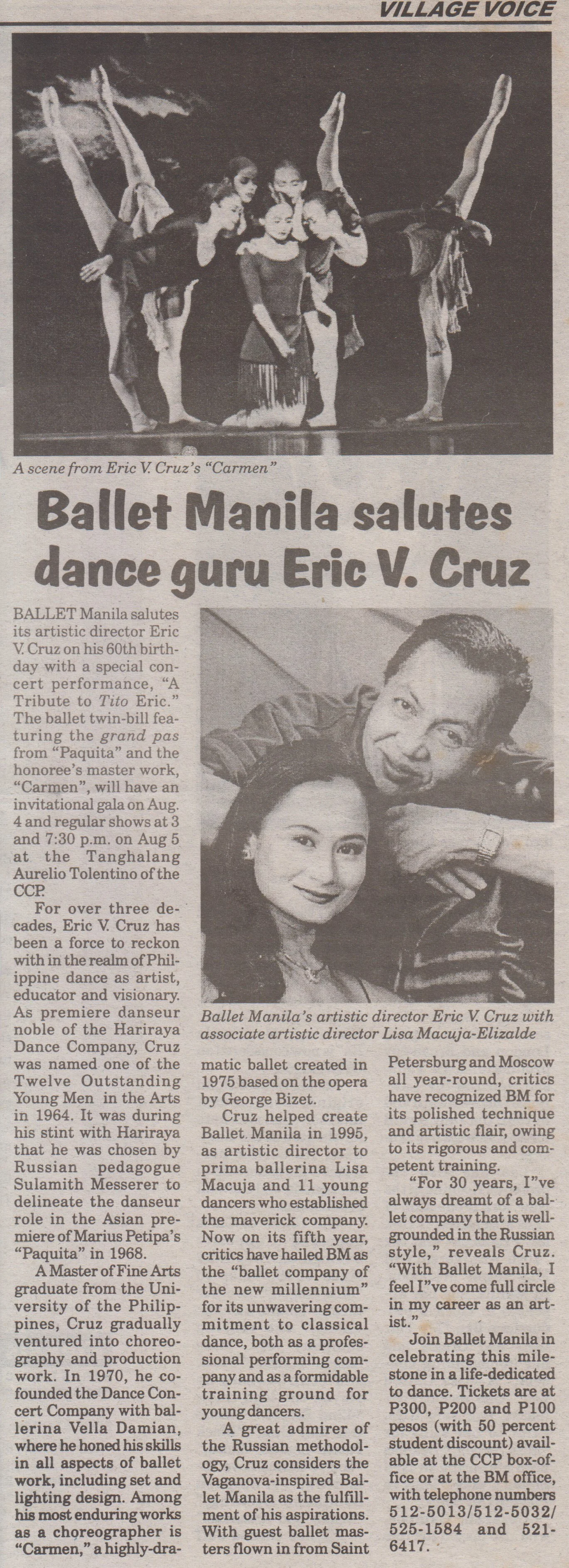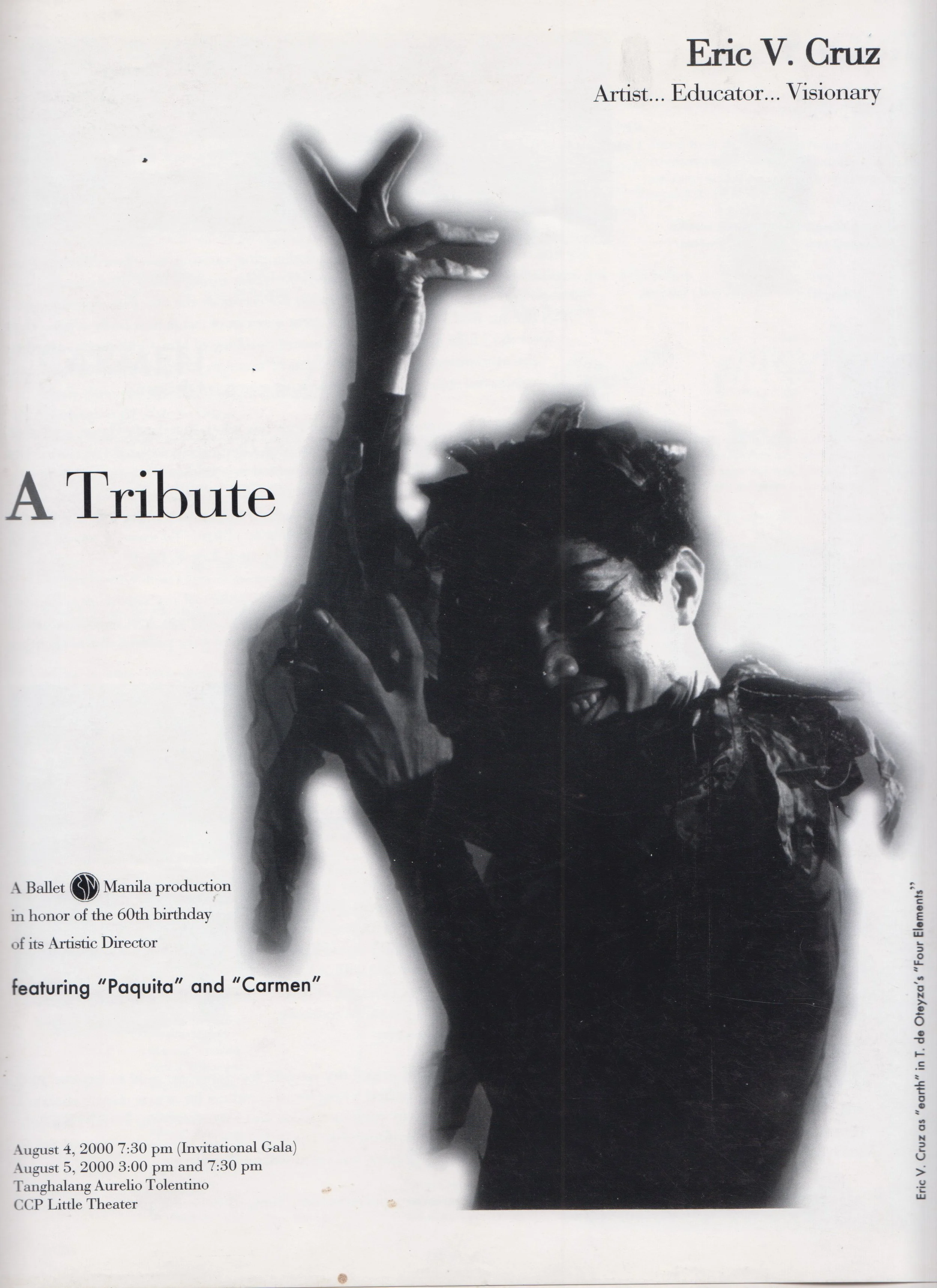 When the late Eric V. Cruz – Ballet Manila’s first artistic director – turned 60 in August 2000, the company dedicated a program in his honor. Souvenir program from the Ballet Manila Archives collection