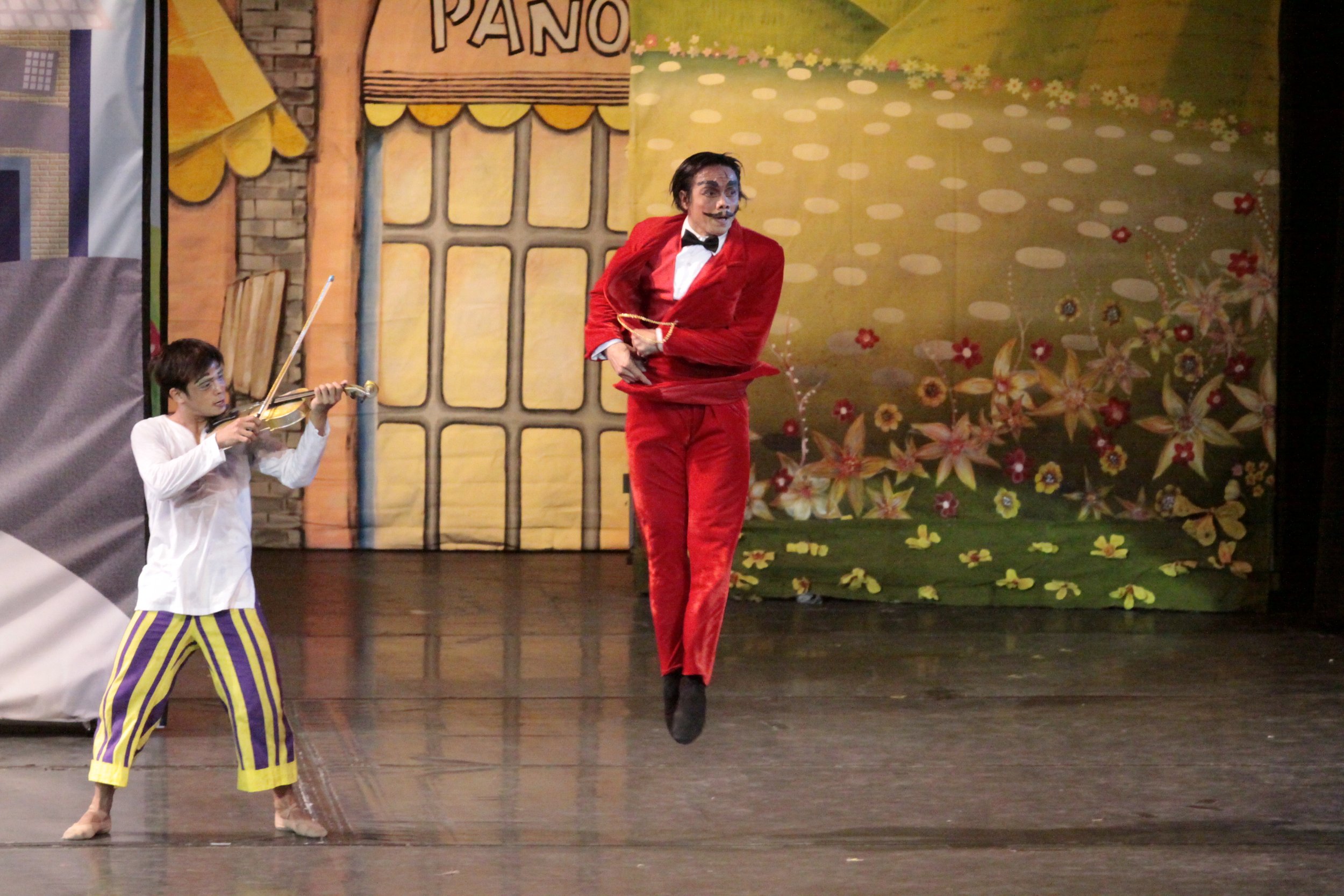 In Mahiwagang Biyulin, the cruel employer Ahab (Marcus Tolentino, right) can’t resist dancing whenever Rodrigo (Gerardo Francisco) plays his enchanted violin. Photo by Ocs Alvarez